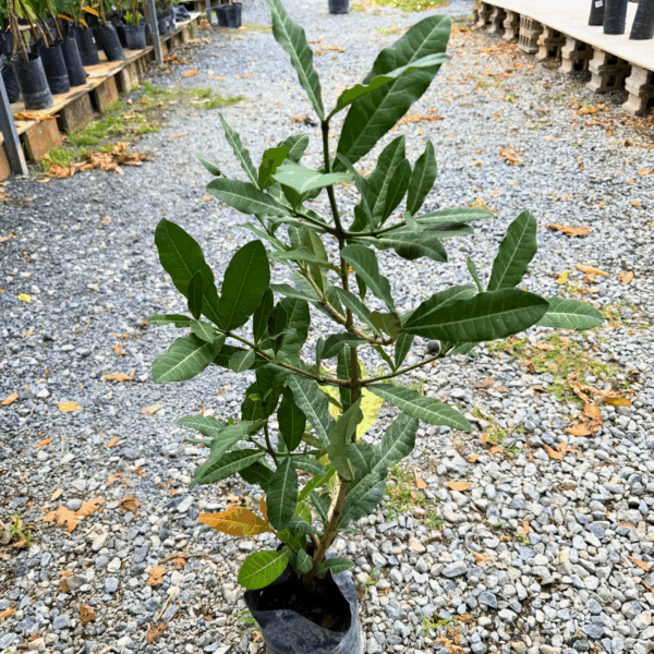 African Mangosteen requires little maintenance beyond occasional pruning. Prune to shape the tree, remove dead or crossing branches, and improve light penetration and airflow through the canopy. Pruning can be done after the fruiting season. The tree is generally free of major pests and diseases, though occasional insects such as aphids, mealybugs, or scale may appear and can be controlled with organic methods such as neem oil or insecticidal soap.