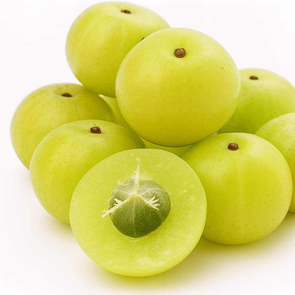 Amla fruit is valued for its crisp texture and refreshing, tart flavor. It can be eaten fresh, added to smoothies, used in cooking, or dried for long-term use. Many people incorporate amla into chutneys, pickles, candies, and fruit preserves. The fruit remains firm even when ripe, making it easy to slice, juice, or cook. It is also rich in vitamin C and fiber.