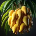 The fruits of the Colombo Kidney mango tree are characterized by their distinct kidney shape, which sets them apart from other mango varieties. They have a smooth, firm texture and are typically yellow or orange when ripe, with a sweet, rich flavor and aromatic fragrance that is highly prized by mango enthusiasts.