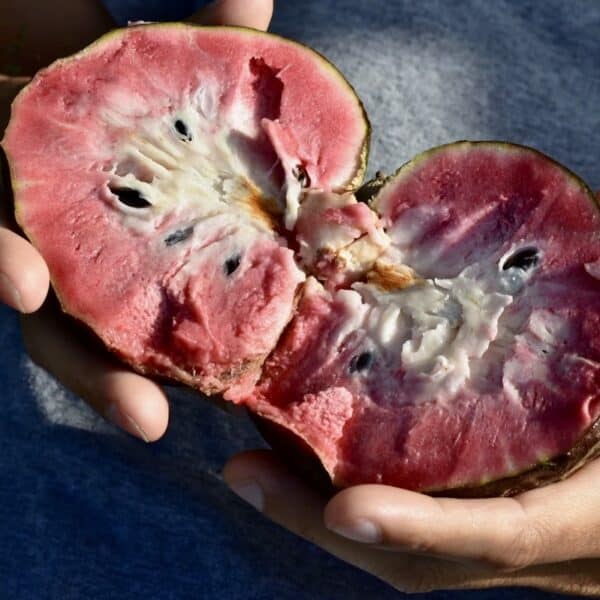 The Bullock’s Heart fruit is highly versatile and enjoyed fresh or used in a variety of culinary applications. The creamy, sweet pulp is often eaten as a snack, added to smoothies, or used to make desserts, ice creams, and beverages. The fruit’s rich flavor pairs well with other tropical ingredients, making it a favorite in tropical cuisine.