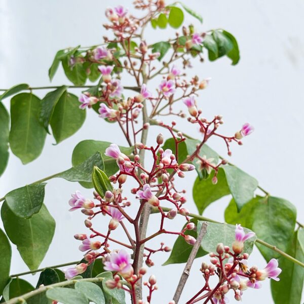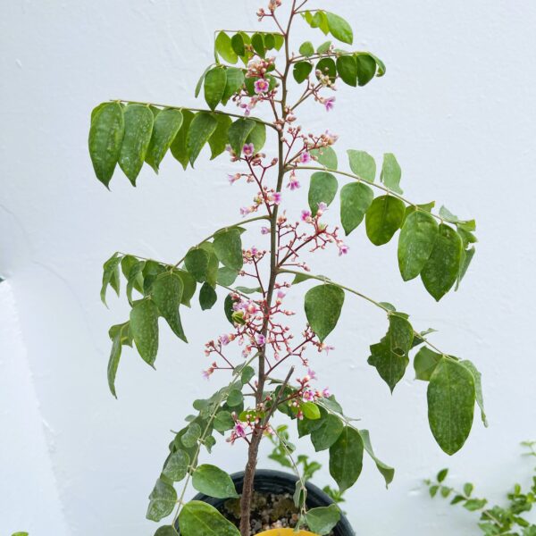 The tree produces clusters of small, fragrant pink to lavender flowers, which attract pollinators such as bees and butterflies. These flowers eventually develop into the star-shaped fruit for which the tree is famous. The fruit typically has five prominent ridges, giving it its distinctive star-like appearance when sliced crosswise. Depending on the variety, the fruit can range from 3 to 6 inches in length, with a thin, waxy skin that turns from green to bright yellow or golden when fully ripe.