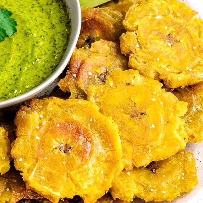 Green plantains are widely used in the Caribbean, Latin America, West Africa, and Southeast Asia, where they are often a daily food item. They can be fried, boiled, baked, or grilled, and are used to make dishes like tostones (twice-fried plantain slices), mofongo (mashed fried plantain with garlic and oil), plantain chips, and boiled plantains served alongside meats or stews.