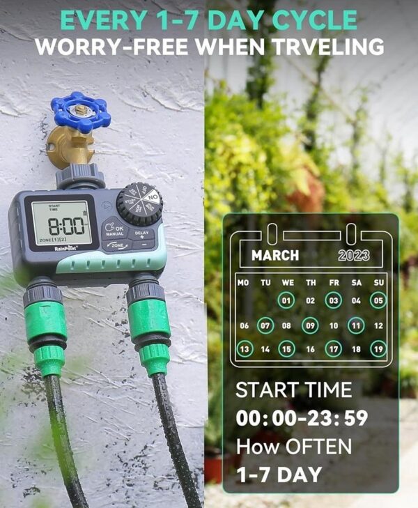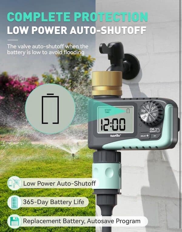 In addition to its practical benefits, using a sprinkler timer like the RAINPOINT 1 can also contribute to more sustainable gardening practices. By automating your watering schedule, you can ensure that water is used efficiently and only when needed, reducing waste and promoting conservation. This is especially important in areas prone to drought or water restrictions, where responsible water management is crucial.