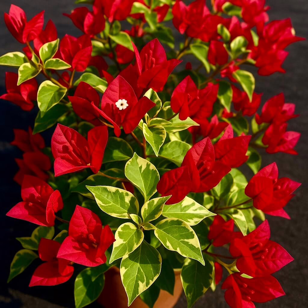 This bougainvillea is perfect for creating colorful hedges, covering fences, training along pergolas, or growing in large decorative pots. Its vivid red bracts contrasted with variegated leaves make it stand out in any garden design. It pairs beautifully with other tropical and subtropical plants, adding a sense of exotic charm and energy to patios, courtyards, and outdoor living areas.